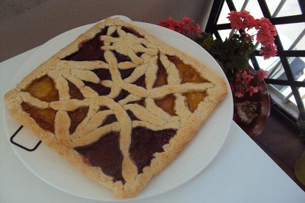 È una classica crostata bigusto con “ricami” in pasta frolla che richiamano la tela di un ragno, un dolce scenografico, ma facile da realizzare, da servire il giorno di Halloween.